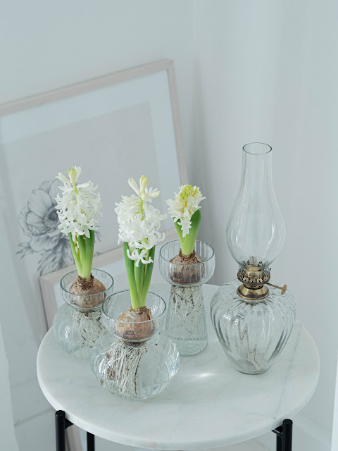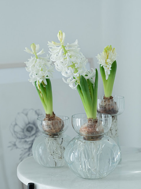Ahojte, my si doma práve spríjemňujeme posledné zimné dni a čakanie na jar hyacintami. Do e-shopu sme minulý týždeň naskladnili rôzne druhy váz na hyacinty, v ktorých pestovanie (ak to tak môžem nazvať :-) ) naberá celkom iný rozmer. Ja som tento druh váz obdivovala už niekoľko rokov na škandinávskych blogoch. Pre nich je totiž typické, že si domov skrášľujú v zime jarnými kvetmi, medzi ktorými nikdy nesmie chýbať práve hyacint. Veď čo je viac jarné ako jeho vôňa ♥