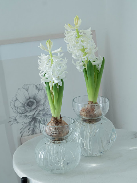 Takéto pestovanie alebo aranžmán má viacero výhod. Tou prvou je bez pochýb tá estetická. Či už ste milovníkom moderného škandinávskeho štýlu alebo vidieckeho, dokonale zapadnú kamkoľvek. Druhou je ich trvácnosť. Pokiaľ vás doteraz odrádzal fakt, že hyacinty rýchlo odkvitnú, tak tomu je s vázami na hyacinty koniec. Mne naposledy vydržali do úplného odkvitnutia až 3 týždne. Nuž a tá tretia je, že ich využijete tak na Vianoce ako aj na Veľkú noc a nemusíte rozmýšľať nad tvorbou zložitých aranžmánov.