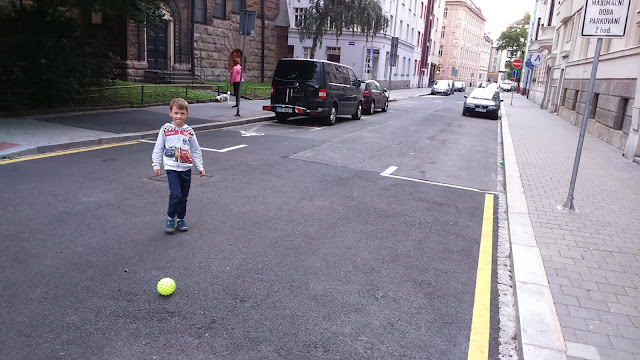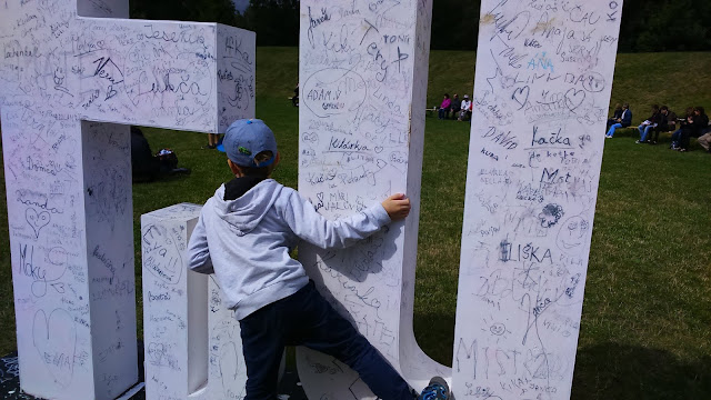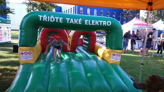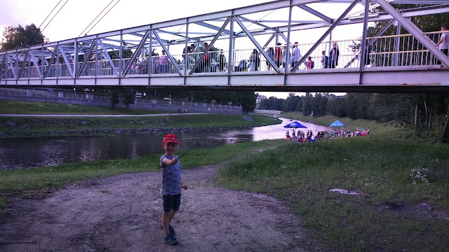 … Bertík chtěl soutěžit, aby za odměnu mohl skákat ve skákacím hradě. Nejprve jsme se ale zašli podívat k řece Ostravici …
