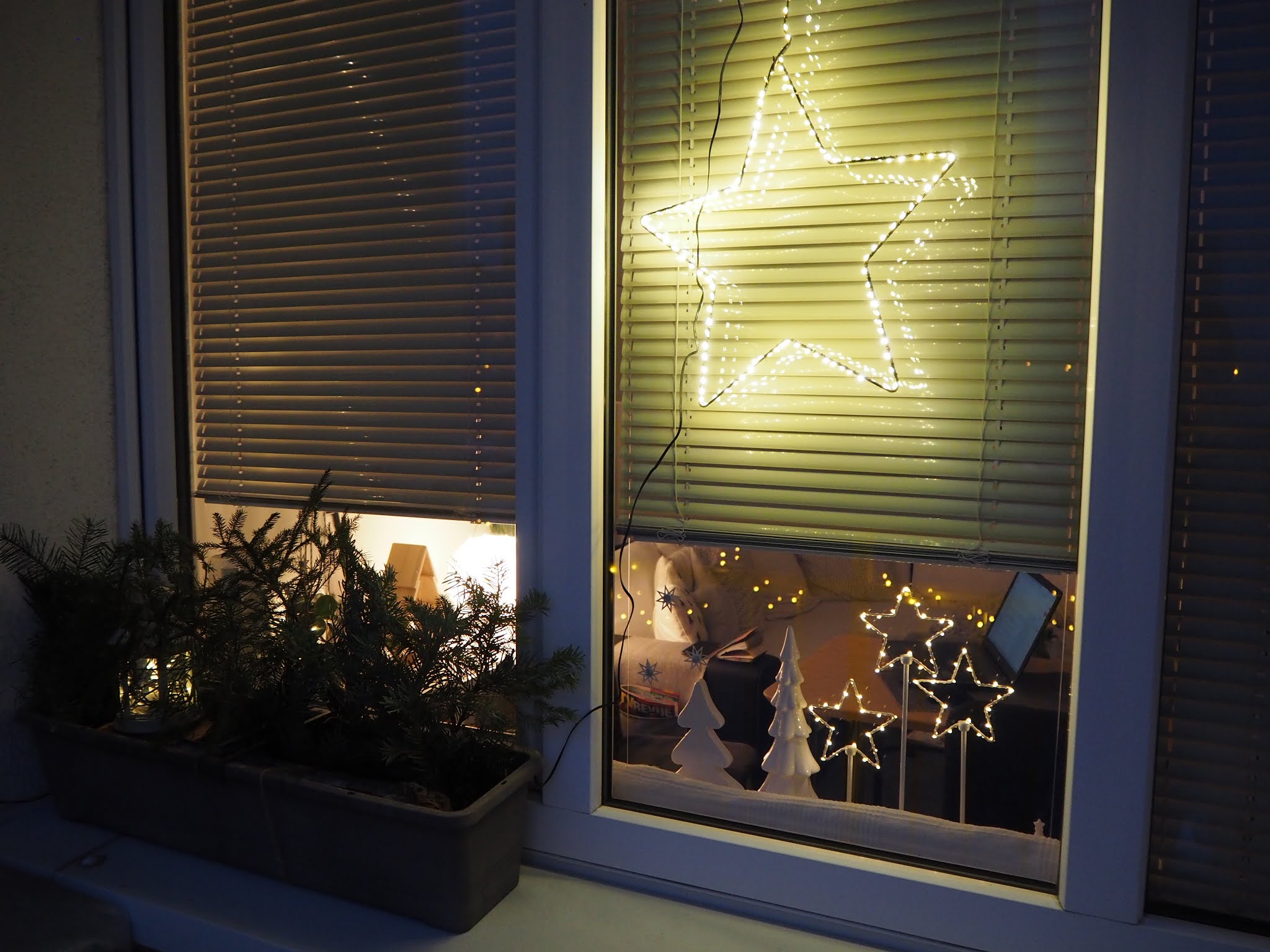 ... k tomu jsem na okno přidala loňské drátěné (OBI), zlatý z Bella Rose a jednu venkovní svítící ...