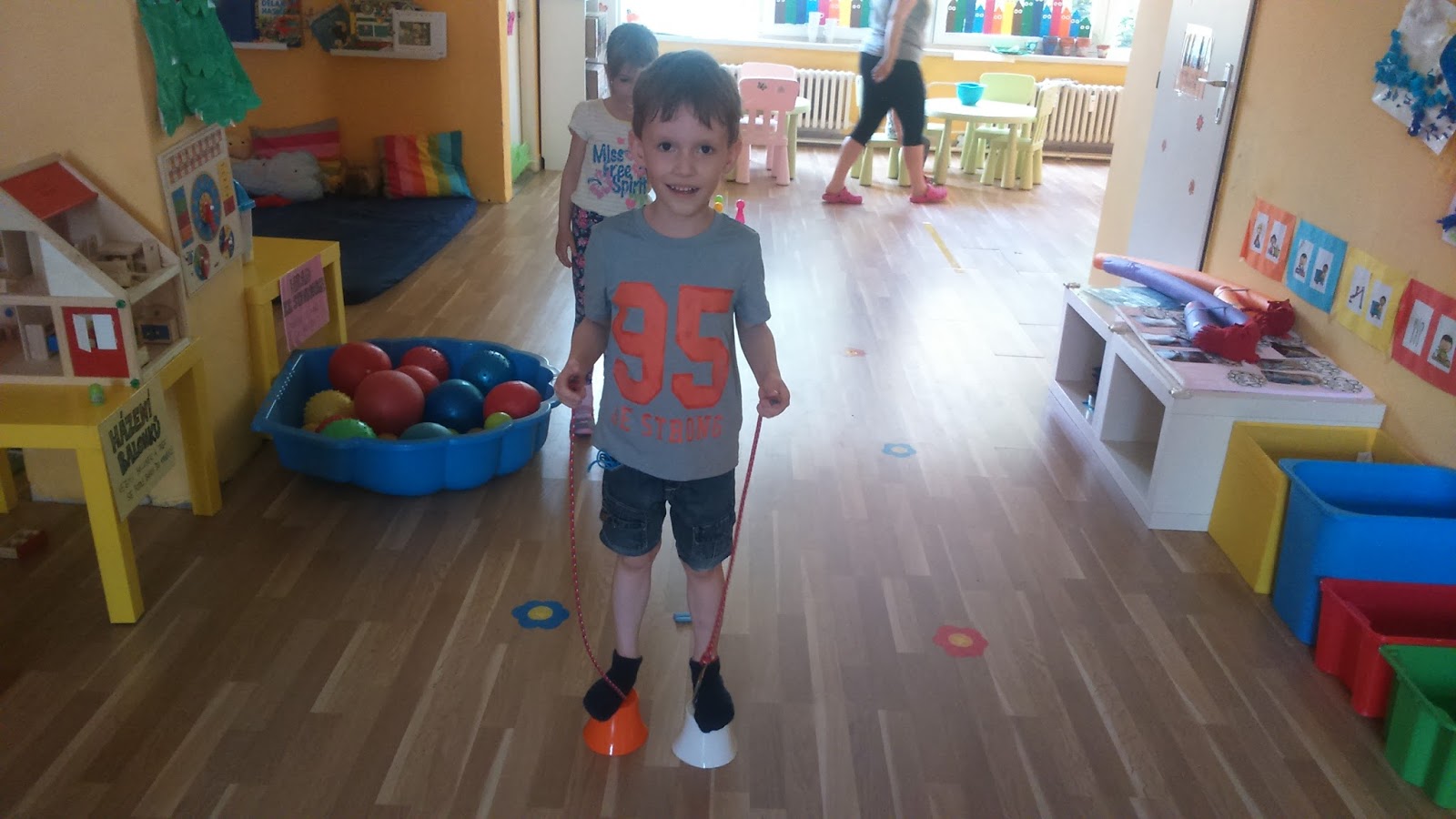 ve školce měly děti Den dětí. Bertík se dočkal a mohl se vyřádit ve skákacím hradě …