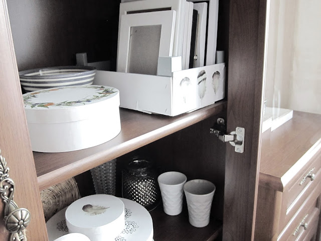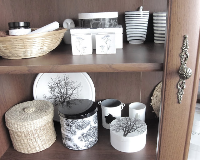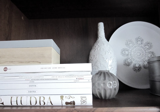 ...po nějakém čase jsem si uklidila ve vitríně. Rozhodla jsem se, že si v ní nechám jen ty opravdu největší srdcovky a přidám k nim své decoupage výrobky. Některé kousky jsem tedy odnesla do charitativního obchůdku u nás ve městě a některé jsem prodala v nedávném bazárku tady (děkuji za váš zájem). S dekoracemi to mám tedy momentálně vyřešené. Právě se nacházím ve stavu, kdy jsem si uvědomila, že je nutně nepotřebuji kupovat a dostatečně mě uspokojuje mé vlastní tvoření, případně poklady donesené zvenku...