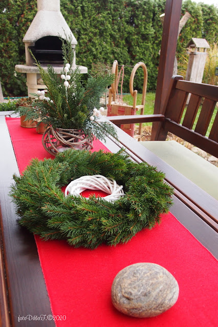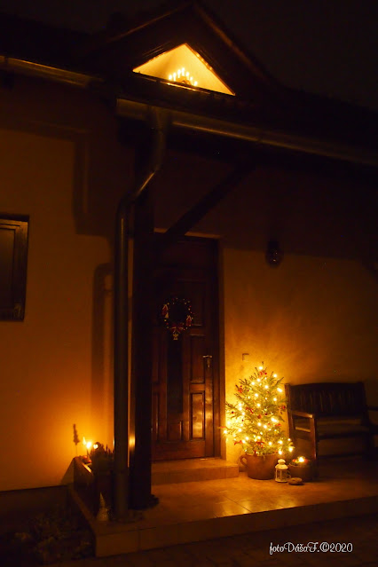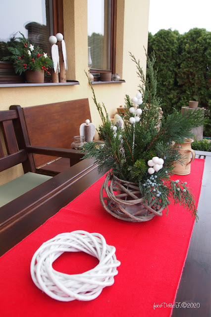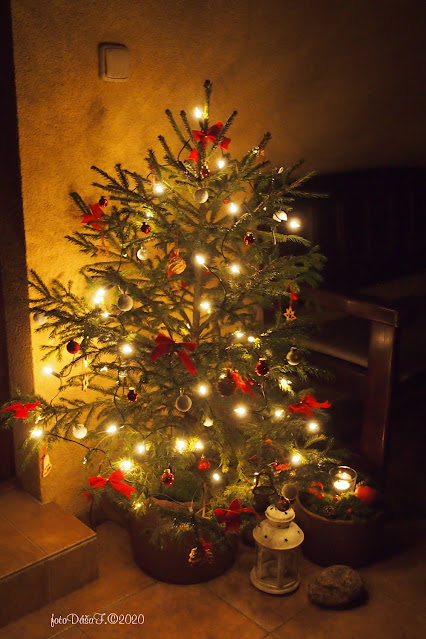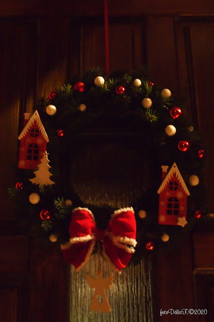 Včera jsem nazdobila věnec a stromeček u vchodových dveří.