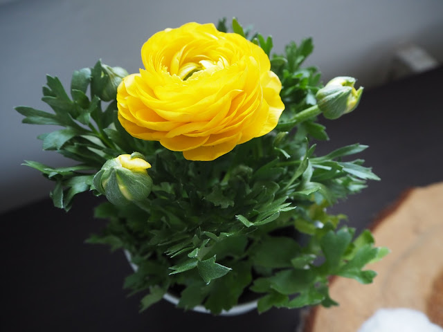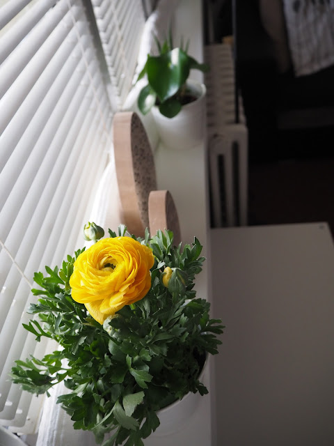 … a na okno v obýváku jsem přidala žlutý pryskyřník …