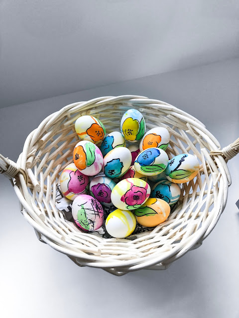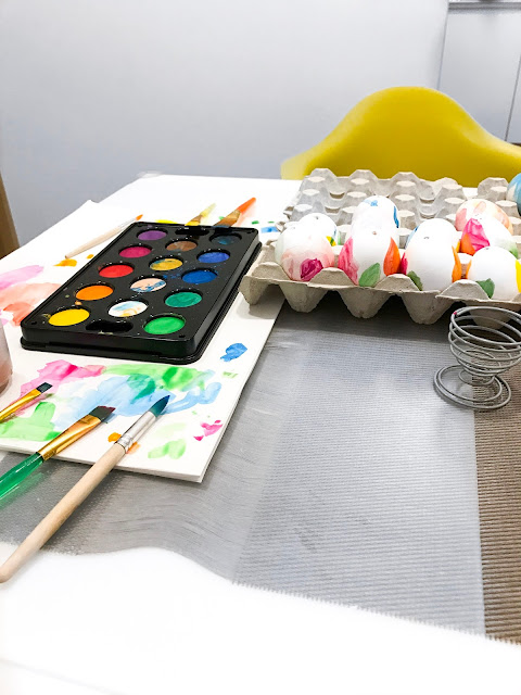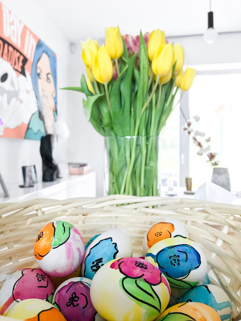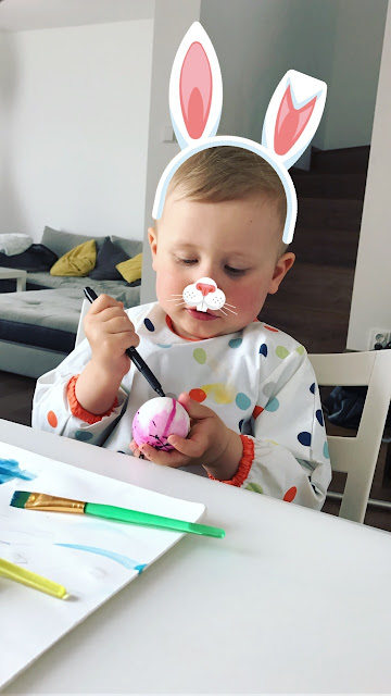 Tak a konečně k tématu, přišly na řadu vajíčka. Ty co zdobí naše okno se vyfoukaly, ostatní uvařily. Vše, spolu s dítětem jsme si připravili na stůl abychom mohli už jen tvořit. Letošní rozhodnutí padlo na aquarellové vajíčka aby se mohl pěkně zapojit i Maxík. ~ #vanghoghovehere ~ Chvíli to vypadalo jako opravdová rodinná idylka, dokud to naše dítě po jednom vajíčku nepřestalo bavit a nezačalo kňourat. Ale byl silný ~ spíš připoután do své jídelní židle ~ a vydržel, chvílema ho to i bavilo. 🙂 Při ruce jsme měli fen, který nám pomáhal při rychlejším zasychání pro další tvoření. Nemusím ani říkat, že to vajíčko, ze kterého jsem měla největší radost jsem dala pod fen, vypadlo mi z ruky, valilo se přes celý stůl a rozbilo se na zemi. ~ pohled manžela: #REALLY???!!! ~ Další jsem rozbila když jsme nandavali do košíku a ještě jedno při kreslení fixou. Moc pyšná jsem na sebe ten den nebyla, ale asi to bylo znamení, že jsem měla jen ležet a nic nedělat 😀