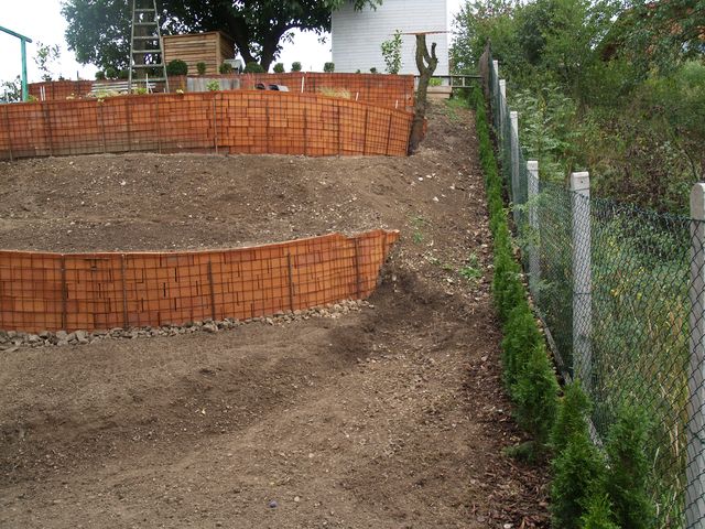 jak už jsem se zmiňovala, budujeme poslední část naší zahrady, která je v obrovském svahu.