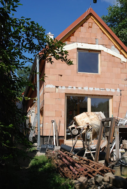 Některé – zatím jen velmi, velmi ojedinělé – části naší zahrady už začínají vypadat znovu jako zahrada. Po třech letech rekonstrukce a mužově snaze co nejvíce materiálu z původních zdí a střechy skladovat a znovu využít, vypadá naše zahrada stále jako něco mezi stavebninami a skládkou.