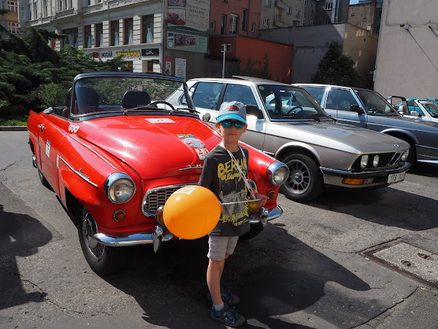 … v poslední řadě aut, kterou jsme viděli si Bertík přál s každým autem vyfotit :-)) …
