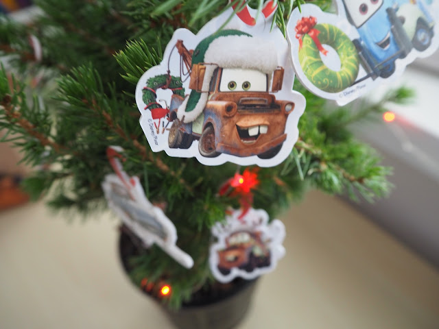… k Bertíkovi jsem nemusela dávat nic, protože jsem mu při vánočním nákupu potravin koupila živý stromeček v květináči s baňkami z kartonu z filmu Auta. Ano, stále jedeme na vlně McQueen …