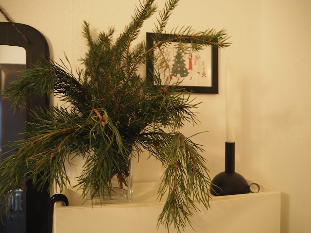 … a dnes napíši ještě i o jiných větvích. Manžel byl během prosince dvakrát v Rakousku. Už při první návštěvě jsem ho prosila o přivezení pár větviček. To díky pracovnímu vytížení nestihl. Stihl to až při druhé návštěvě. Na štědrý den mi přivezl takovouhle hromadu větví. Nový věnec jsem už nestihla, tak jsem aspoň větší část větví dala do váz. Pro tu vůni jehličí a čerstvost 😉 …