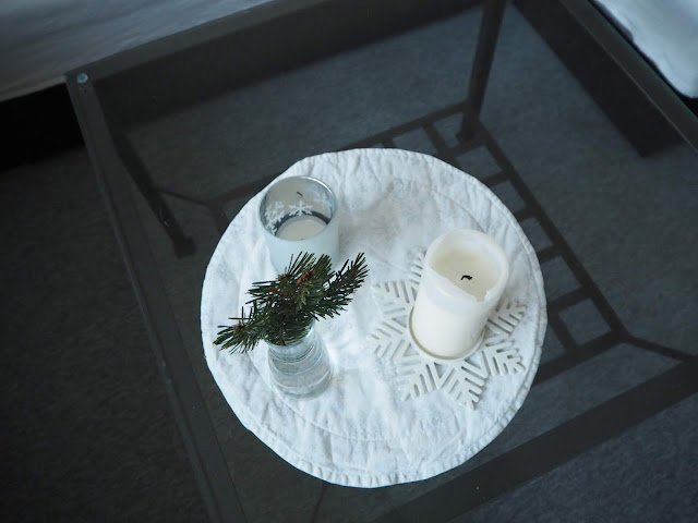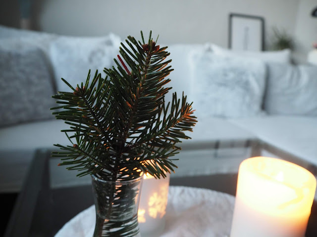 vánoční výzdobu doma jsem vyměnila za tu zimní, ledovou. Bylo to vzdušné, ale chyběla mi tam malá jehličnatá větvička ...