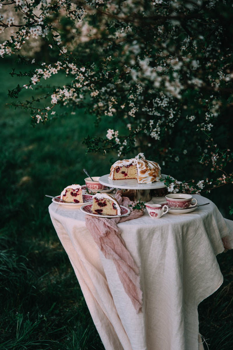 Abych pro vás recept opravdu vyšperkovala, pekla jsem jej tento víkend znovu (a taky jsem jej chtěla znovu nafotit – první várka fotek se mi úplně nezdála :-)). Úplně lákalo fotit jej venku někde mezi rozkvetlými stromy. Byť na fotkách to vypadá idylicky, pěkně jsem vymrzla, začal foukat silný vítr a sluníčko se schovalo … Nakonec vše dobře dopadlo. Ve fotkách uvidíte i některé z prvního focení, které si mi líbí a je mi líto je zde neukázat :-).