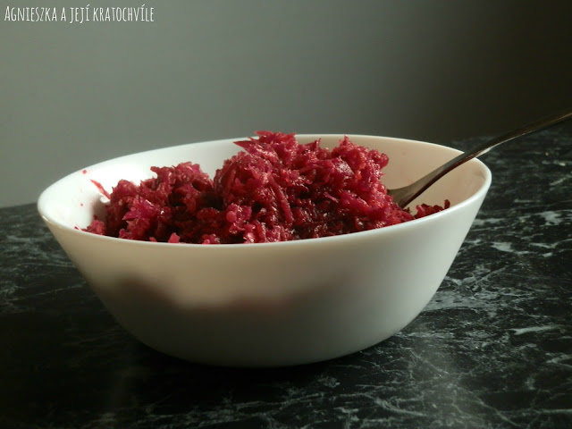 Svou první várku kvašené zeleniny jsem vyrobila z kombinace zelí, mrkve, cibule a červené řepy. Kvůli přítomnosti syrové řepy jí však jím především já a pak muž, děti bohužel příliš neoslnila (vlastně ještě chutná naší fence, dojídala pickles po dětech a vypadala velmi spokojeně 🙂. Další várku tak budu zkoušet jen ze zelí, mrkve a cibule a chystám se koupit i speciální keramickou nádobu na kvašení.