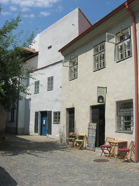 A na jeho okraji naše loňská kavárna Pod lampou. Stále stejně úžasné frapé s čokoládovou zmrzlinou, krásný dvorek, krásný patchworkový gauč, na WC krém na ruce. Drobnosti mě vždycky potěší.