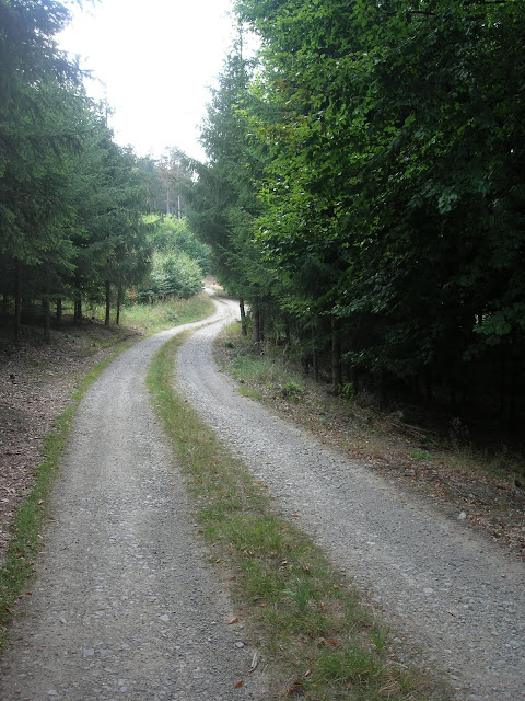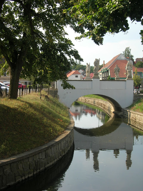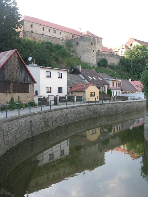 Kolem Oslavy jsme (trochu oklikou) vyrazili do Třebíče. Po rovince to sice bylo a hezké to tam bylo moc, brzy jsme ale narazili na ploty a cedule. Muž řekl spoustu sprostých slov o lidech, kteří vykoupí pozemky v celé nivě řeky a ploty přehradí cesty, a táhl naše dvě naložená kola svahem.