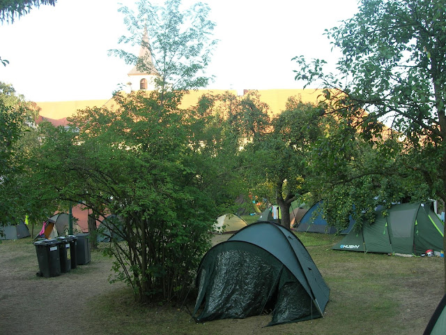 V tropické noci jsme přespali pod širákem ve festivalovém kempu „Špitálek“ (ovocný sad mezi klášterem, nejspíše bývalým klášterním špitálem a řekou Oslavou). Atmosféra tam byla parádní (vzpomněla jsem si trochu na svůj rok na VŠ kolejích) a kytary hrály až do úsvitu, já ale tak nějak byla ráda, že ležím..
