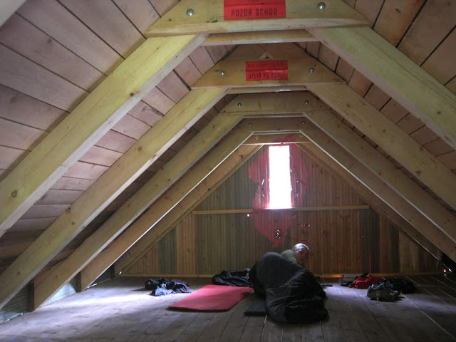 Na vrcholu Javořice by místní krom vysílače asi rádi viděli i rozhlednu. Nám ale stačilo, že někdo moc inteligentně udělal nad turistickým přístřeškem spací půdu. A já se tak nemusela bát, že na mě v noci šlápne prase..