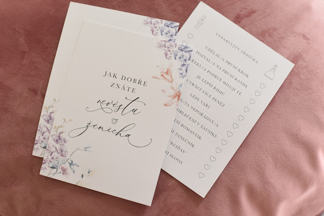 Kromě toho, co jsme měli na svatbě my, mě ještě napadá pár tipů, co se dá využít. Moc se mi např. líbí vymazlené visačky na víno. Můžou každá nést nějaký vtipný popisek. Super jsou kartičky s dotazy na hosty, k nevěstě a ženichovi. Skvěle to nahrazuje to zvedání boty uprostřed sálu, které doslova nesnáším, Tohle je hezká a příjemná forma. Kartičky má Lucka navíc volně v prodeji, třeba jako tip na dárek, komu se budou v blízké době hodit. Další nenucenou zábavou jsou dózy na vzkazy, např. jaké rady do života by vám hosté zanechali, nebo jaké přání by vám dali. Vzkazy a přání si pak na svatbě během večera můžete společně číst, myslím, že se u toho dost nasmějete nebo dojmete.