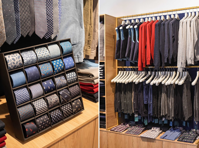 Kromě věcí na míru si tu k obleku můžou pánové vybrat i kravatu, motýlek, kapesníček nebo boty a pásek sladěné ve stejné barvě, aby byl celý look úplně kompletní.