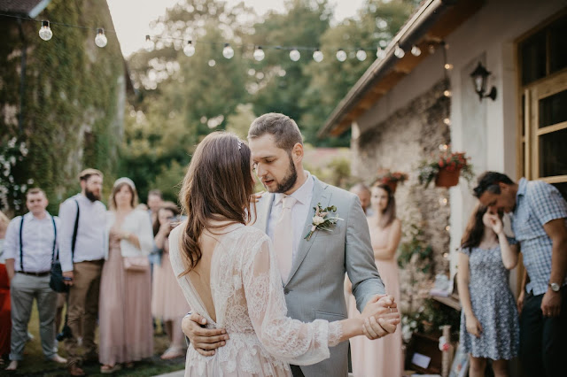 A narazila jsem naštěstí na karlínský O'black, kde měli přesně ten světle šedý odstín, který jsem si na svatbu představovala. Proč zrovna tuhle barvu? Měli jsme na svatbu všechno v pastelových odstínech růžové, šedé v kombinaci se stříbrnou. Něžné, ale přesto ne přeslazené. Proto byla ta šedá skvělou volbou, než jakákoliv jiná barva. Chtěla jsem, aby manželův oblek byl hlavně světlý, protože to je podle mě něco, co ke svatbám patří. Tmavý oblek se hodí kamkoliv jinam, jen ne na svatbu. tak to prostě mám. Letní svatba by přece neměla být ve smutných barvách, které si vezmete na večerní koncert, pohřeb nebo business schůzku. Tohle je zcela jiná událost. Ale nemusíte samozřejmě souhlasit, pokud např. budete mít v barvách svatby vínovou nebo tmavě modrou, pak to skvěle zapadá.