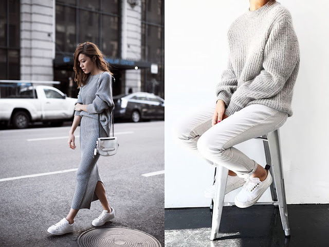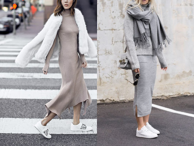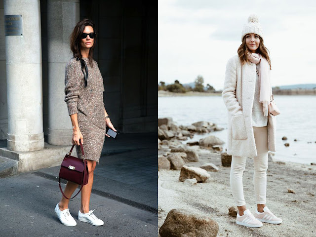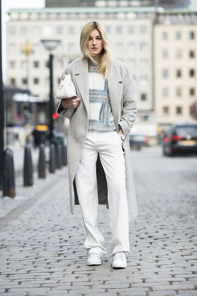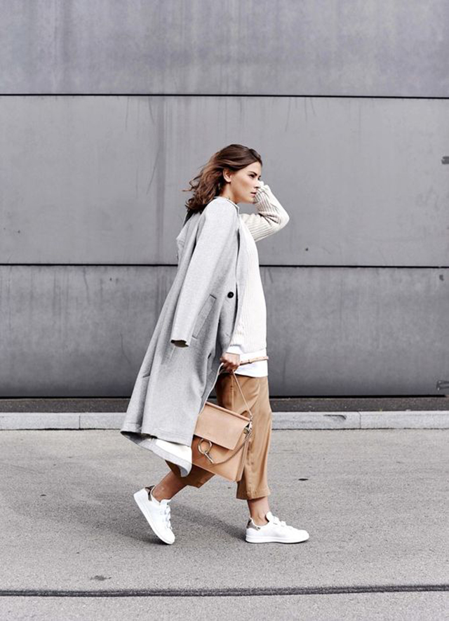 A jak takové tenisky užít i teď na podzim a v zimě? Za mě rozhodně s vlněným kabátem a klasickými nebo koženými kalhotami. Vypadá to svěže a nenudí. Když necháte pod svetrem nebo mikinou vykukovat bílou košili a přihodíte skládanou sukni, máte super outfit. Oblečte vlněné žebrované šaty, stylovou kabelkou a bílé tenisky, které to celé dotáhnou k dokonalosti. A jaké barvy? Sáhněte po těch jemnějších a světlejších odstínech. Černou si můžete užít kdykoliv jindy. Taková světle šedá, béžová, pastelově růžová bude s bílou skvěle sladěná.