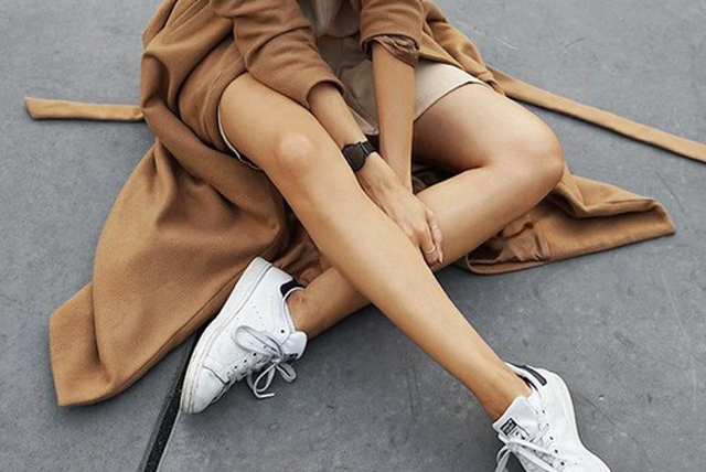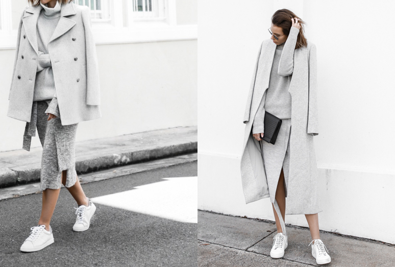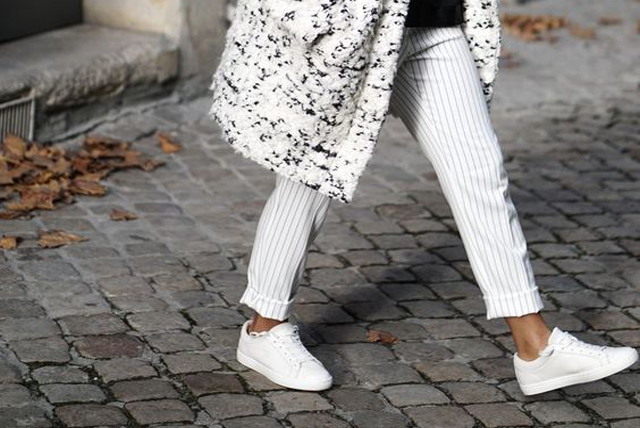 A jak takové tenisky užít i teď na podzim a v zimě? Za mě rozhodně s vlněným kabátem a klasickými nebo koženými kalhotami. Vypadá to svěže a nenudí. Když necháte pod svetrem nebo mikinou vykukovat bílou košili a přihodíte skládanou sukni, máte super outfit. Oblečte vlněné žebrované šaty, stylovou kabelkou a bílé tenisky, které to celé dotáhnou k dokonalosti. A jaké barvy? Sáhněte po těch jemnějších a světlejších odstínech. Černou si můžete užít kdykoliv jindy. Taková světle šedá, béžová, pastelově růžová bude s bílou skvěle sladěná.