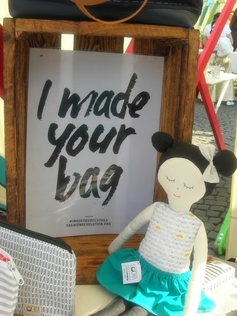 V rámci Praguemarketu jsme se jako prodejci mohli zapojit do kampaně Fashion Revolution a ve svém stánku vystavit ceduli s nápisem „I made your clothes/jewellery/bag“. S radostí a hrdostí jsem ceduli vystavila..