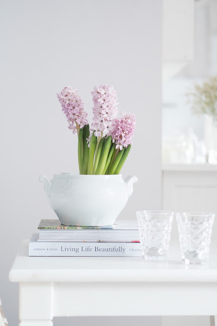 In the hope that spring will show up earlier I bought some spring bulb flowers. So much fun for a little money, don`t you think?