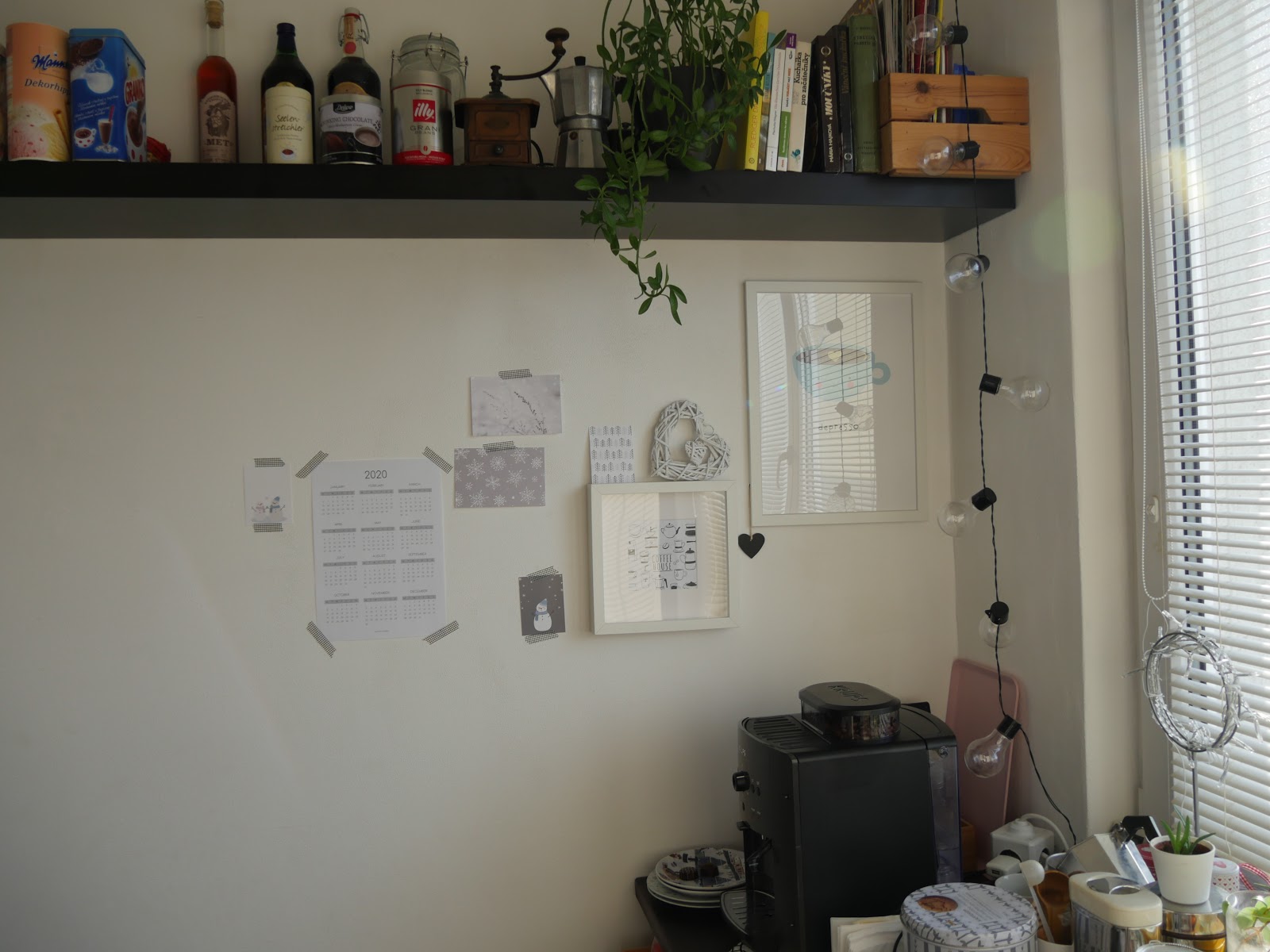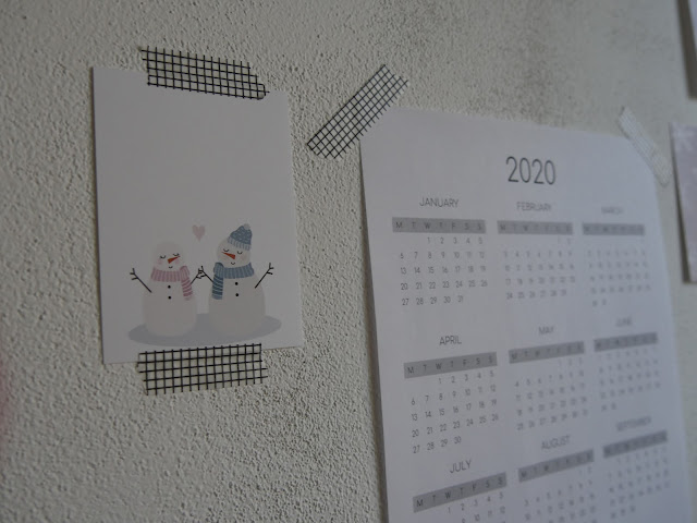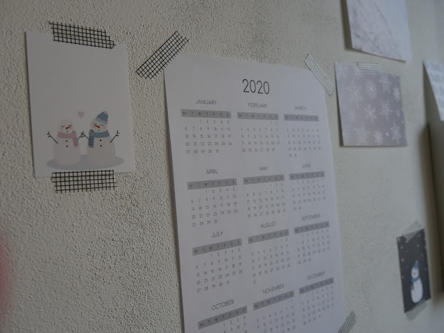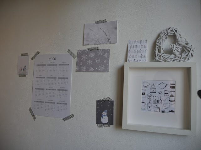 ... do kuchyně jsem na stěnu zase nalepila roční kalendář, který mi vloni dost chyběl a pár obrázků sněhuláků a zase vloček ...