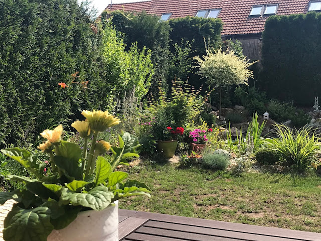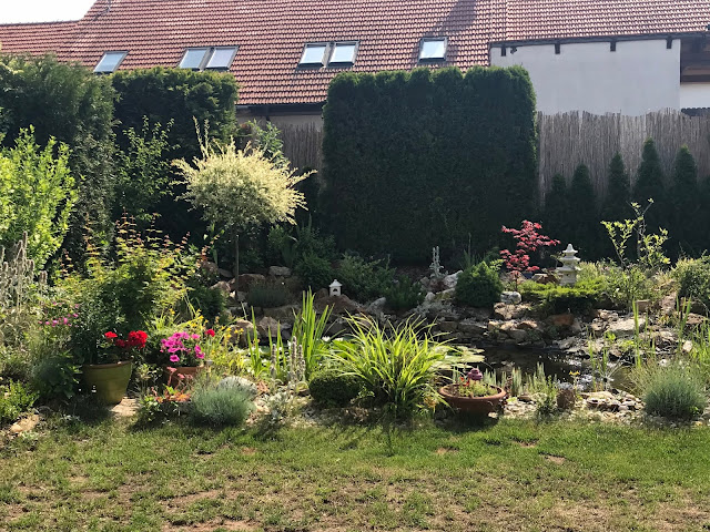 Vše však potřebuje vydatnou zálivku. Nedostatek vody se projevuje „odrbaným“ trávníkem, který v určitých místech připomíná saharskou poušť. Vodou šetřím, ale i tak se děsím, až přijde účet za vodu. Za poslední měsíc u nás zapršelo dvakrát…