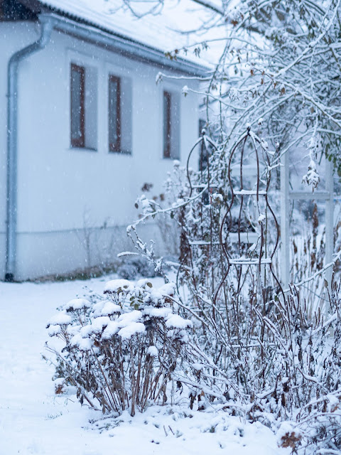 Záhradu špeciálne na zimu neupravujem a všetky trvalky nechávam tak, ako skončili sezónu. Poskytnú tak útočisko hmyzu a záhrada si ponechá ako tak štruktúru a záhony nie sú iba prázne miesta s blatom... Keď k tomu napadne sneh, je to nádhera!