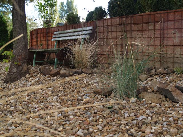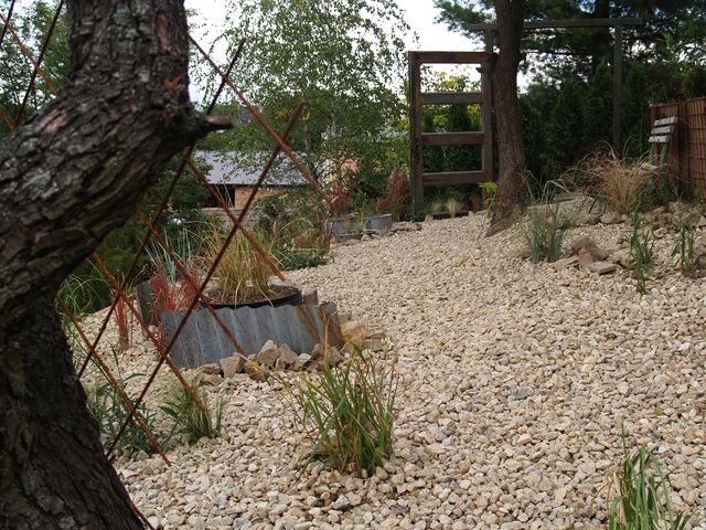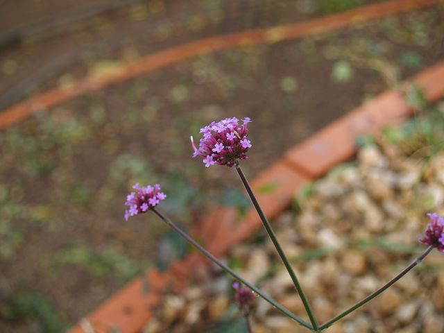pokračujeme se zadní zahradou, horní travnatá část, je zasypaná oblázky, ještě doplním nějaké nízké trávy jako černý sedoulek a nechám do příštího roku, uvidím jak se všem travinám bude dařit. K travinám jsem zasadila pouze dvě kvetoucí krásky a to svíčkovec a verbenu (sporýš argentický) do které jsem se naprosto zamilovala, je nádherná jemná a ta barva....