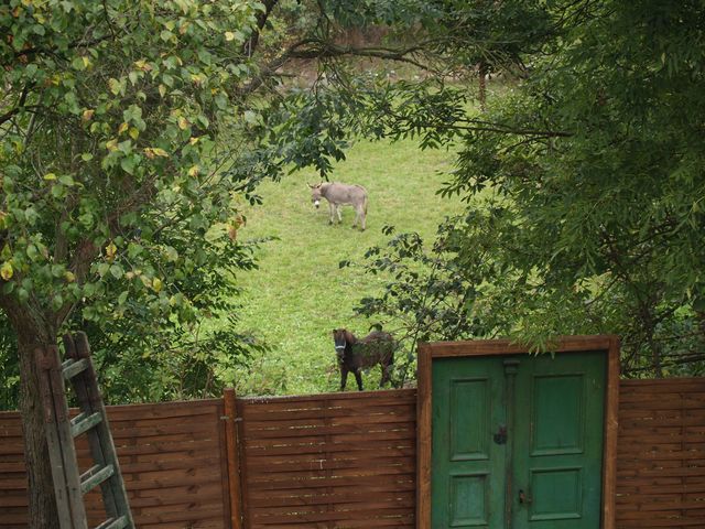 V záhonu kde mám staré spodky šicích strojů a vaničky budou další mé oblíbené a to, bohyšky (hosty), kapradiny, dlužichy a buxusy. Ve vaničkách jsou díry pro odtok vody, štěrk a hlína. Už jsou plné cibulek narcisů a tulipánů, na jaře k nim přidám, z horní zahrady, bohyšky které jsou už moc velké. Ano kdo si všiml, za zahradou máme společnost a to poníka a oslíka, který je úplně jako pohádkový Ijáček.