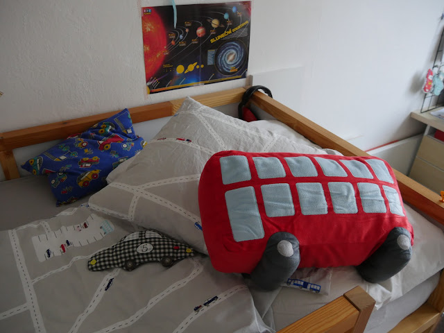 ... tentokrát jsem objevila polštář autobus a k tomu skvělé povlečení akorát pro Bertíka ...