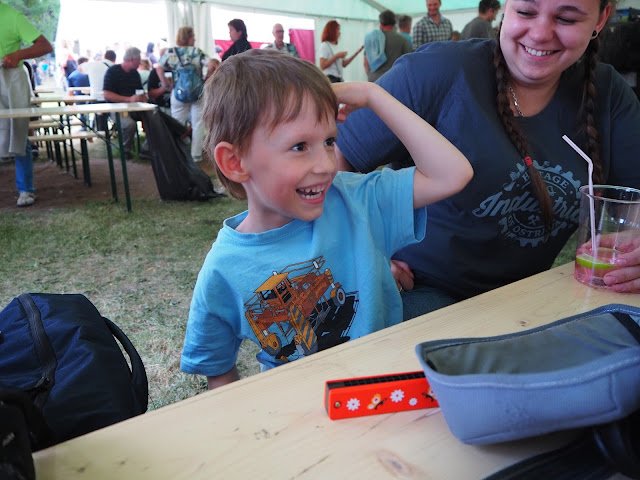 … a to se nám i podařilo. Zaujali jsme pozici ve stanu a dlouho jsem se odtud nehnuli. Vychutnali jsme si tam kafíčko, zmrzlinku, později klobásky nebo langoše (foto bohužel nemám, nestihla jsem to :-)) a hlavně atmosféru festivalu …