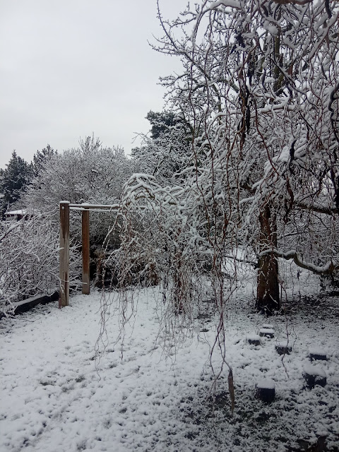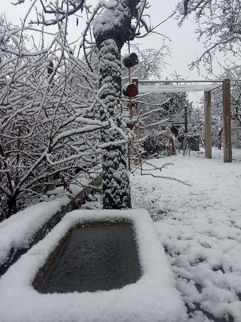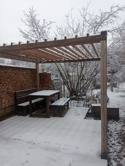 A tak i v naší velmi pomalu se rodící zahradě vytvořil sníh kouzelná zákoutí. Máme už rok a půl v ruce koncept, jak by měla zahrada vypadat (moc díky Janko) a pomalu na tom makáme.