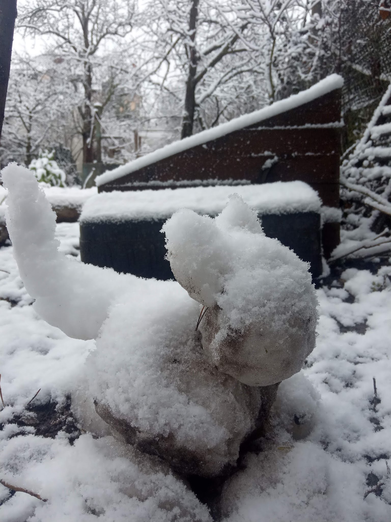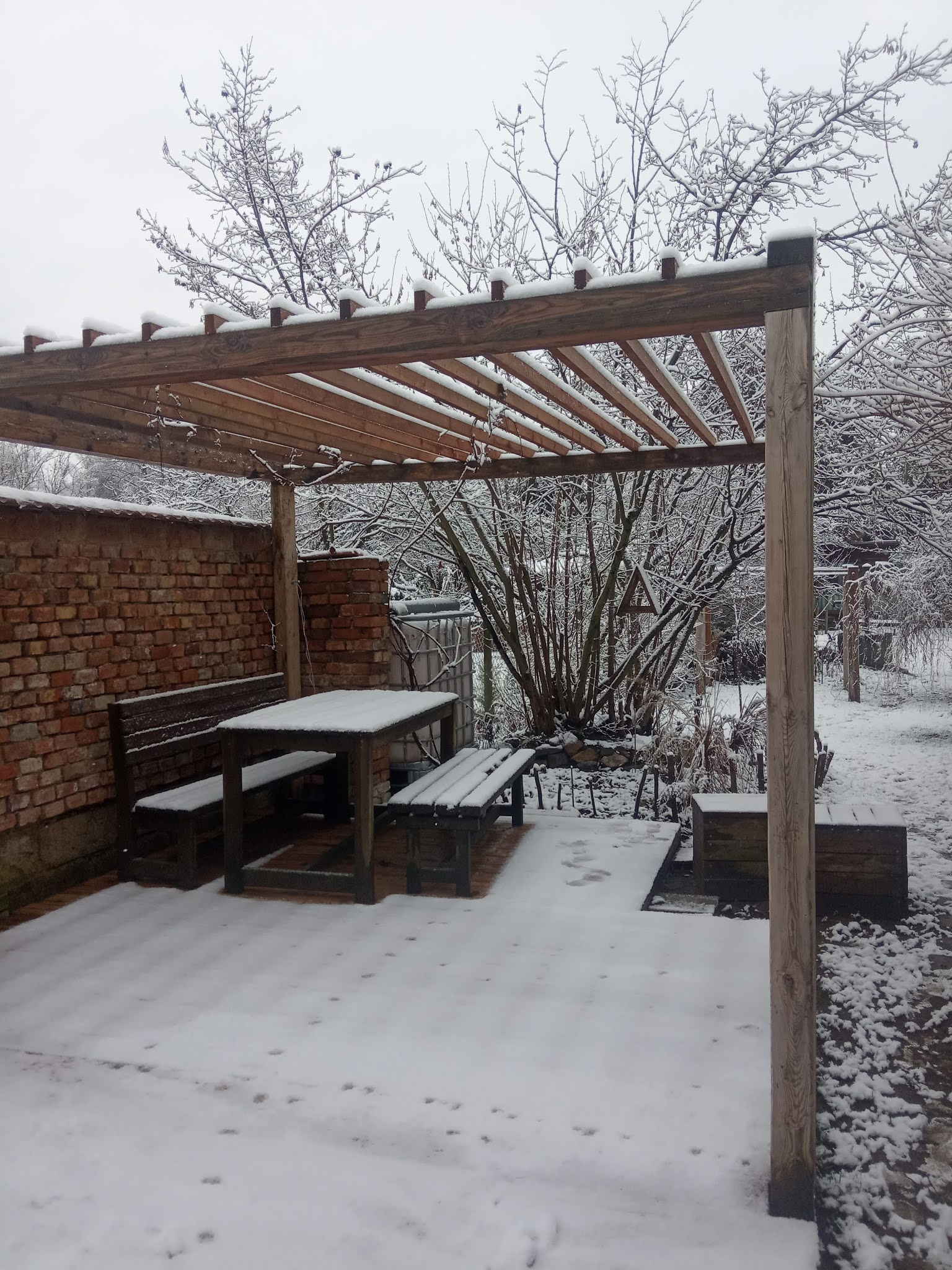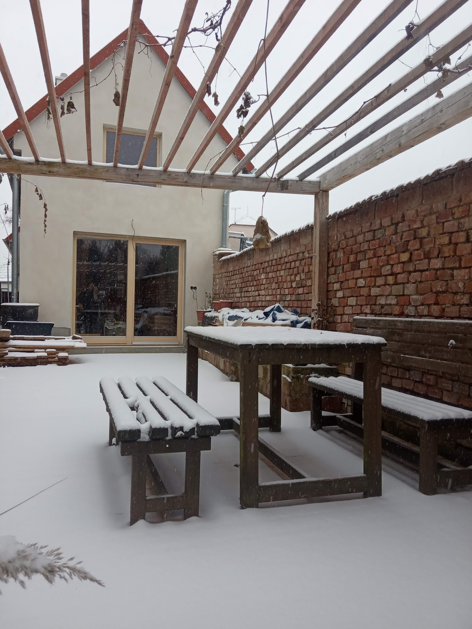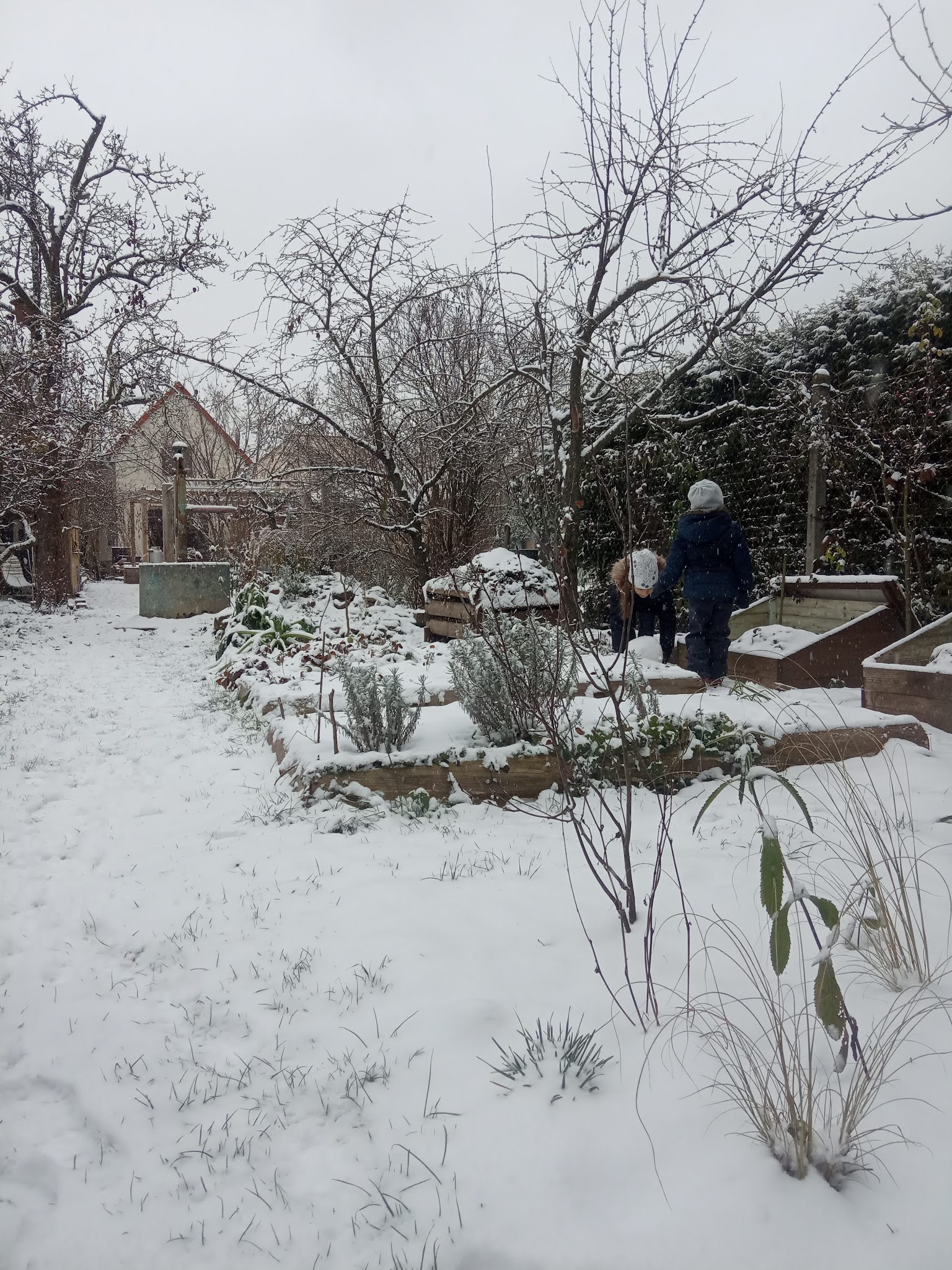 A tak i v naší velmi pomalu se rodící zahradě vytvořil sníh kouzelná zákoutí. Máme už rok a půl v ruce koncept, jak by měla zahrada vypadat (moc díky Janko) a pomalu na tom makáme.