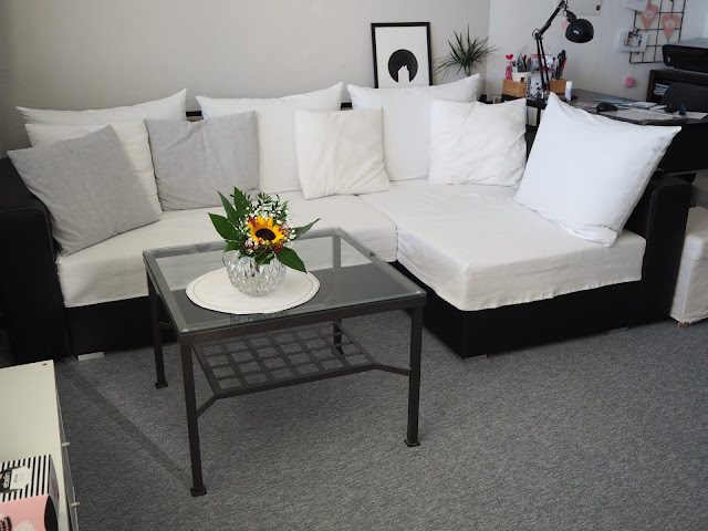 … já přerovnávám a rovnám krabice, skleničky a ostatní nezbytnosti, které mám v obýváku. Zatím nemám úplně hotovo, ale už se blížím do finále. Sedačce jsem ušila nový potah a tady je výsledek …