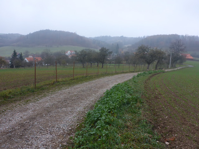 A další na louce nad vesnicí, s lavičkou a luxusním výhledem. Tady se řešila svatomartinská tajenka.