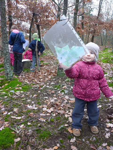 U křížku našli (až po totální nápovědě, že pod svícnem je největší tma:)) další dopis. Podle jeho instrukcí jsme lesem po světýlkách došli až nahoru na kopec, k hejkalímu domečku. (Světýlka jsou geniální reflexní nálepky, které předem rozmístíte na stromy nebo kam to jen jde. Ve dne je téměř nevidíte, po tmě se úžasně kamarádí se světlem dětských baterek. Jen je pak nezapomeňte zase vysbírat..).